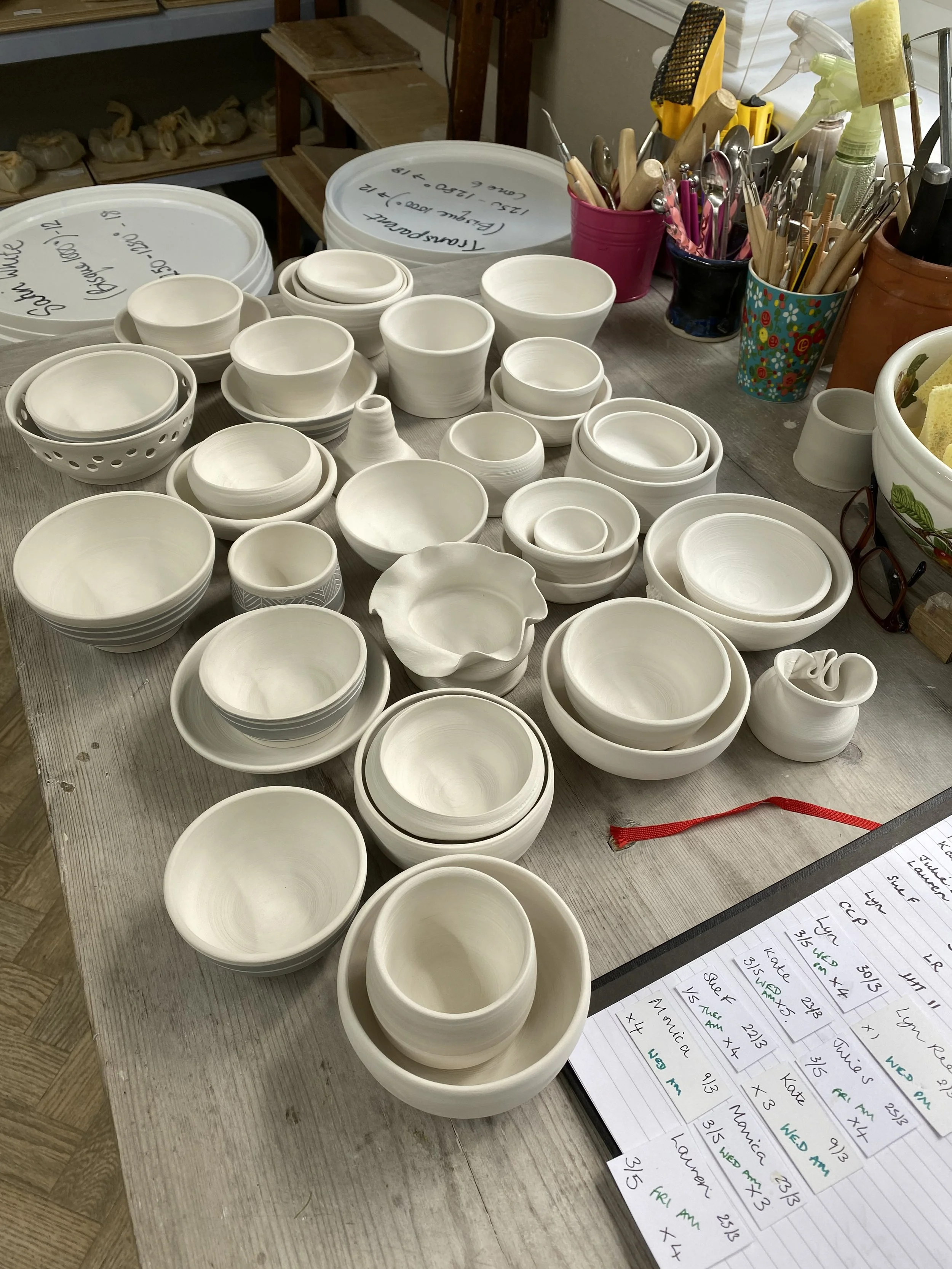 Last trimming session for Rebecca, Tula & Natalie and glazing choices made for their final glazing session!