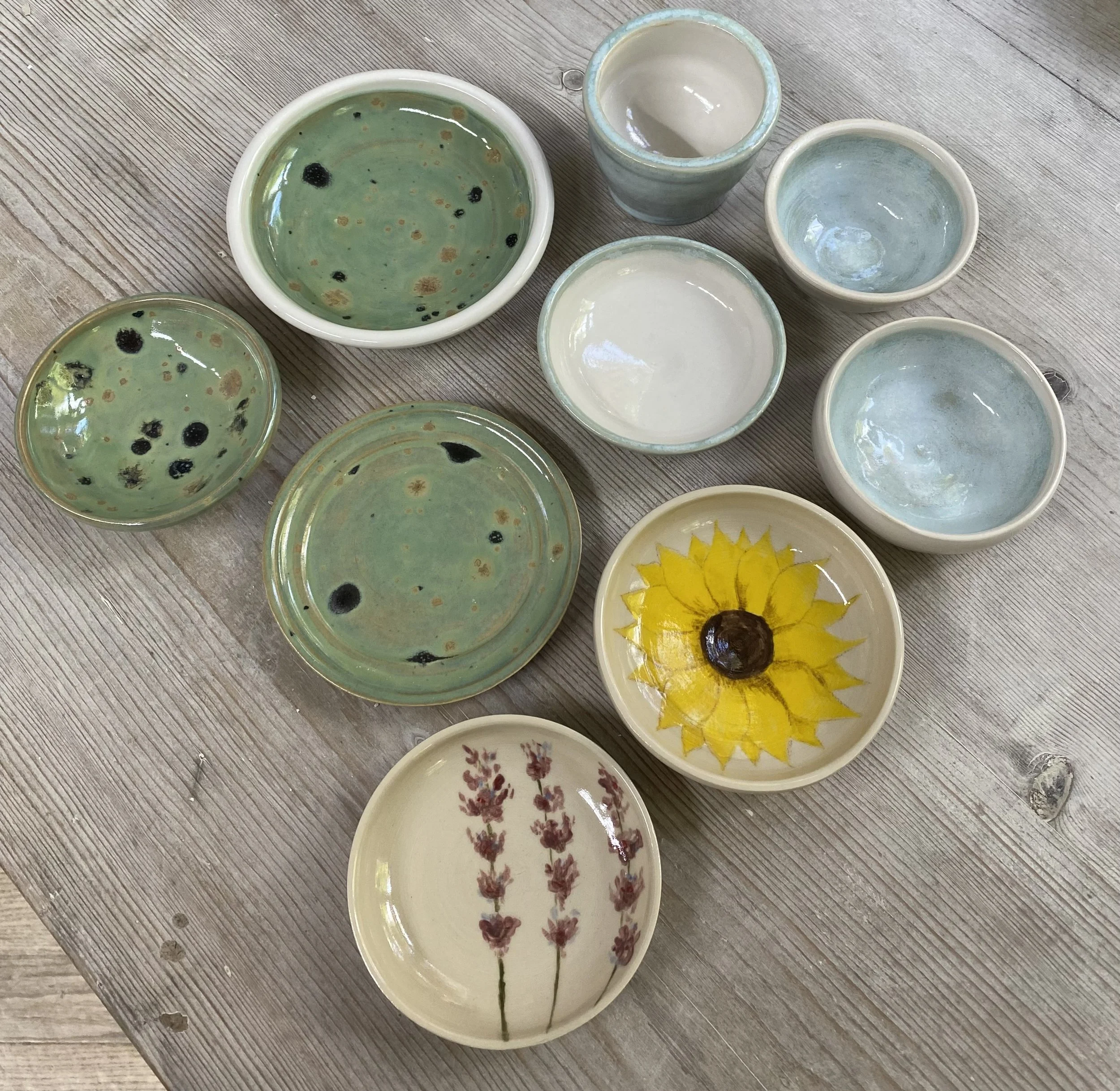 The finished pieces from Zara & her 3 daughters' 'Throwing Experience' !