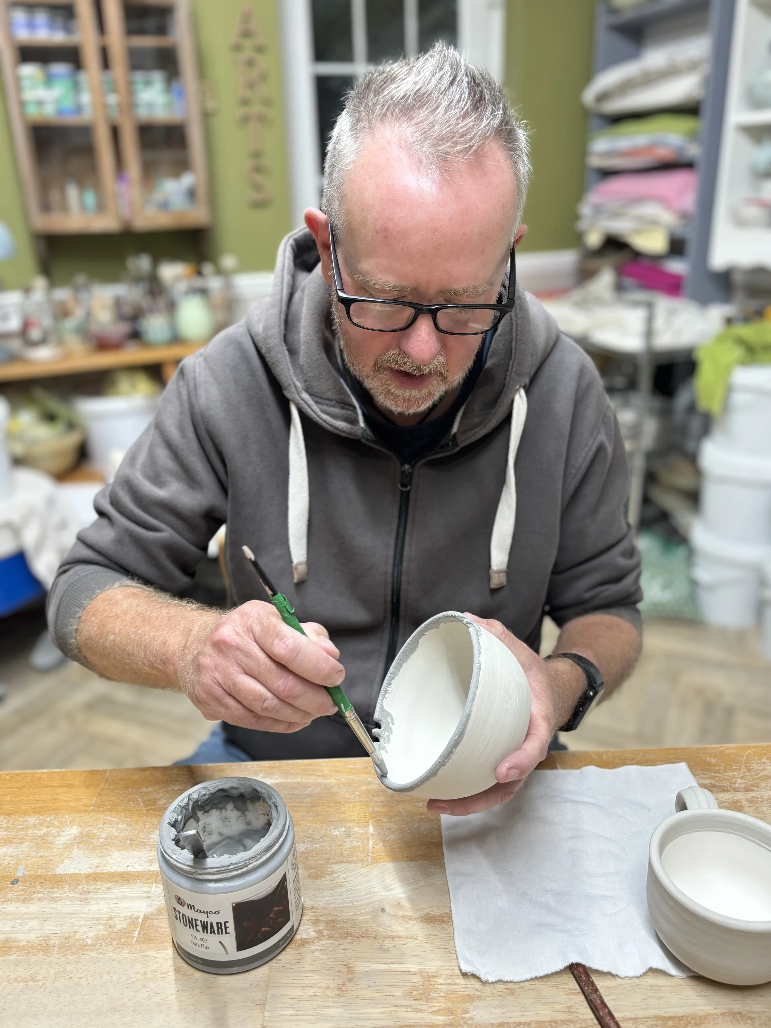 ... & Guy who returned to glaze their previously thrown pieces!